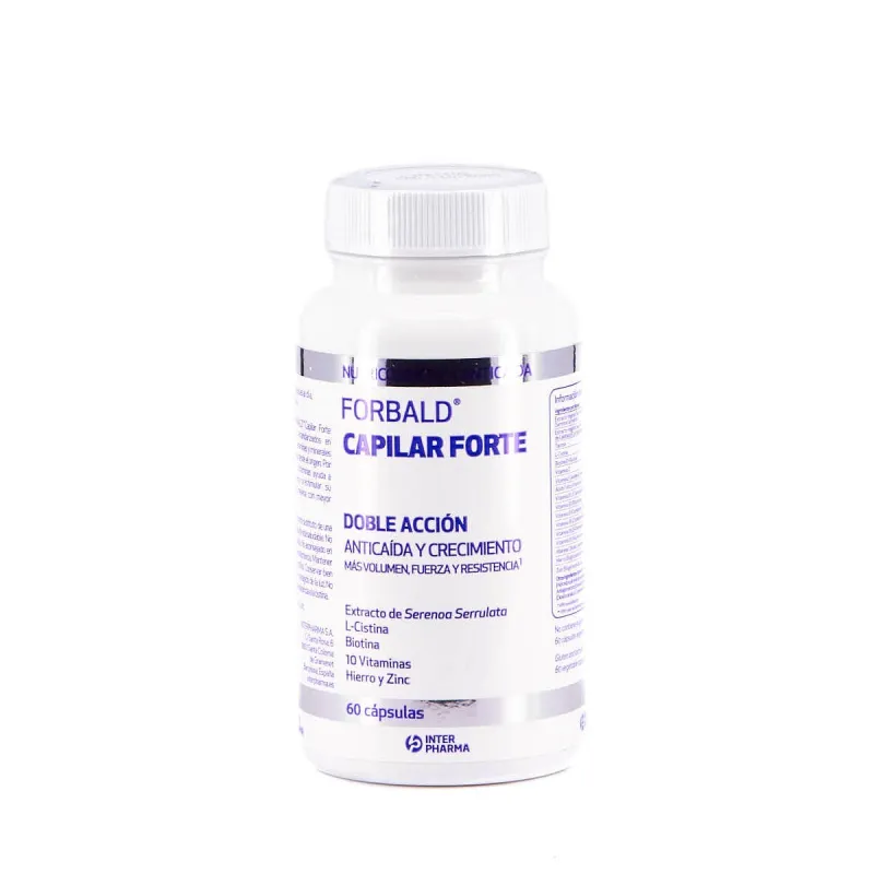 Forbald capilar forte es un complemento alimenticio formulado para aportar nutrientes esenciales que contribuyen al cuidado capilar desde el interior. Su combinación de vitaminas, minerales y extractos de plantas está orientada a apoyar la fortaleza y vitalidad del cabello.