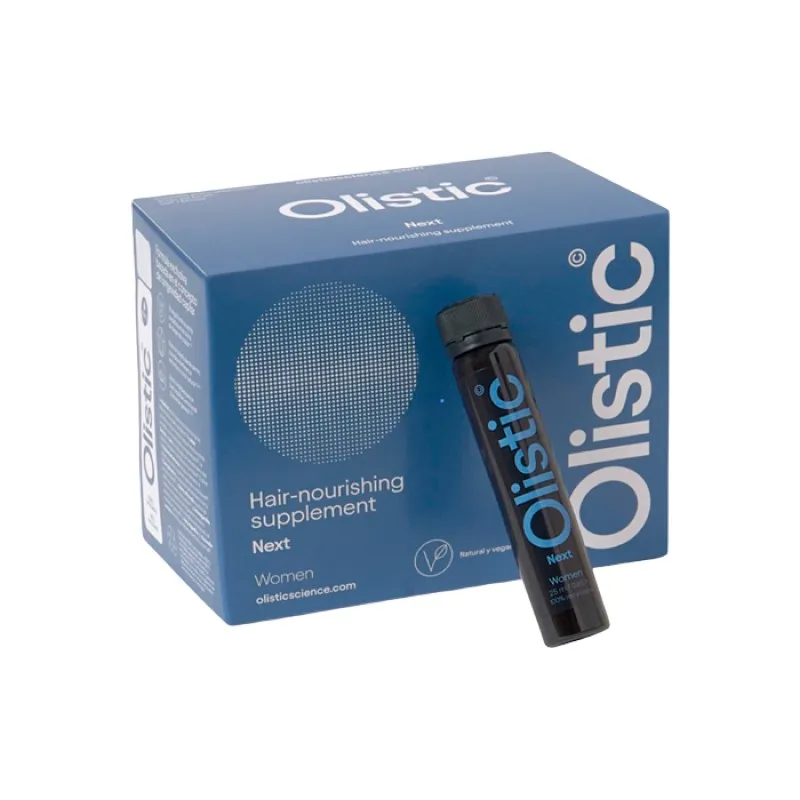 Olistic Next Women es un complemento alimenticio en viales diseñado exclusivamente para mujeres que desean mantener un cabello normal y saludable. Su fórmula combina una selección de nutrientes, incluyendo biotina, zinc, selenio y vitaminas B, junto con extractos de adaptógenos como ashwagandha. Esta combinación de ingredientes contribuye al crecimiento normal del cabello, al mantenimiento de su estructura y a la función metabólica asociada a la regeneración capilar. Además, sus componentes ayudan a modular la respuesta frente al estrés y al equilibrio hormonal, factores que pueden influir en la salud capilar femenina.