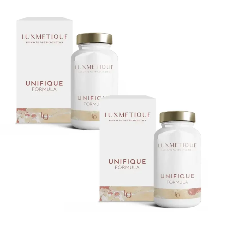 Luxmetique Formula Unifique Duplo 2x60 comprimidos es un complemento alimenticio en formato de cápsulas diseñado para ayudar a aportar nutrientes habituales de la dieta que contribuyen al mantenimiento de la salud de la piel y a favorecer un tono cutáneo más uniforme dentro de una alimentación equilibrada y un estilo de vida saludable. La fórmula combina extractos vegetales, ácidos grasos esenciales y micronutrientes con funciones nutricionales normales relacionados con la piel.