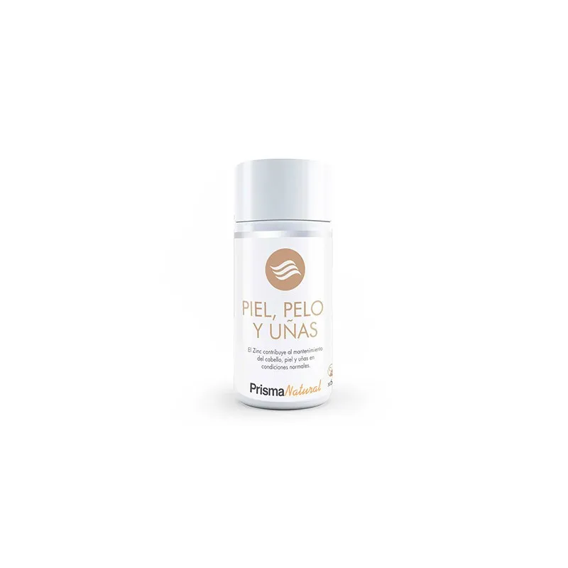 Prisma Natural Piel Pelo Uñas 563 mg, 60 Caps. es un complemento alimenticio que combina cuidadosamente una serie de micronutrientes esenciales para aportar soporte nutricional a la piel, el cabello y las uñas. La fórmula integra levadura de cerveza, zinc, vitaminas C y E, selenio y extracto de cola de caballo. Cada uno de estos ingredientes contribuye a procesos fisiológicos específicos, ayudando a complementar la ingesta diaria de nutrientes destinados a la regeneración celular y al mantenimiento de la estructura de tejidos queratinizados. El producto está formulado para favorecer una aportación equilibrada de nutrientes en periodos de mayor exigencia metabólica, como procesos de crecimiento, postratamientos químicos o etapas de fragilidad de tejidos, sin sustituir una dieta equilibrada ni tratamientos médicos.
