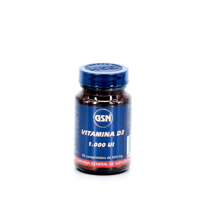 GSN Vitamina D3 1000 UI es un complemento alimenticio formulado con colecalciferol, la forma de vitamina D3 de mayor actividad biológica. Cada comprimido aporta la dosis diaria recomendada de 1000 UI de vitamina D3, un nutriente que interviene en el metabolismo del calcio y del fósforo. Está concebido para complementar la ingesta dietética y la síntesis cutánea tras la exposición solar, contribuyendo a cubrir las necesidades diarias de este nutriente esencial en distintas etapas de la vida.