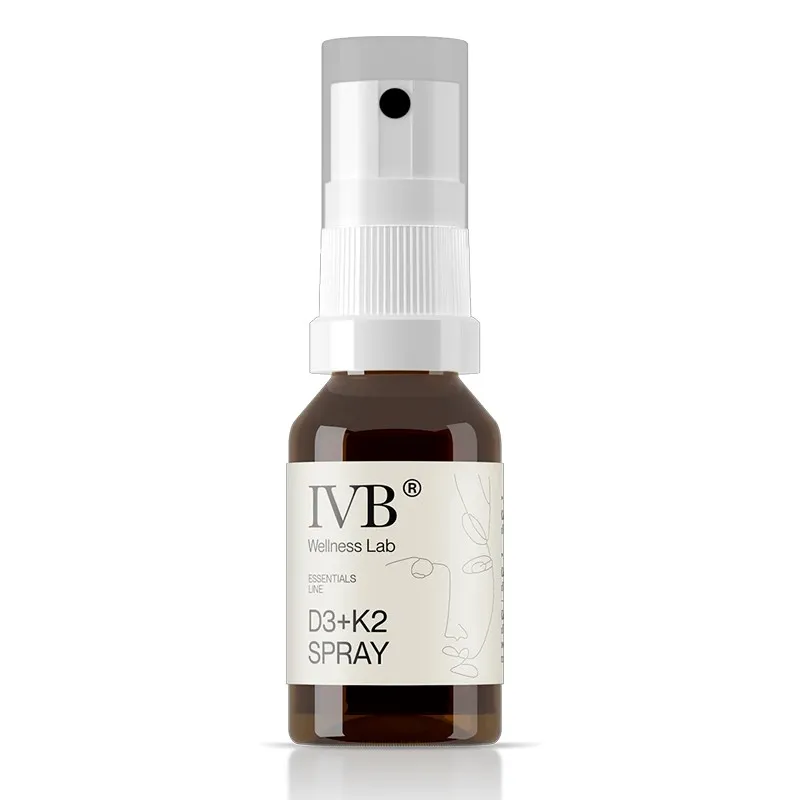 IVB Vitamina D3+K2 Spray es un complemento alimenticio en formato spray de 15 ml, ideado para facilitar la administración diaria de vitaminas D3 y K2. Su formulación líquida y su dosificador permiten una aplicación directa sobre la mucosa oral, favoreciendo una administración cómoda y adaptada a distintos perfiles de usuario. Este método de uso puede resultar especialmente adecuado cuando se precisa un aporte continuo de estas vitaminas en periodos de baja exposición solar o necesidades específicas.