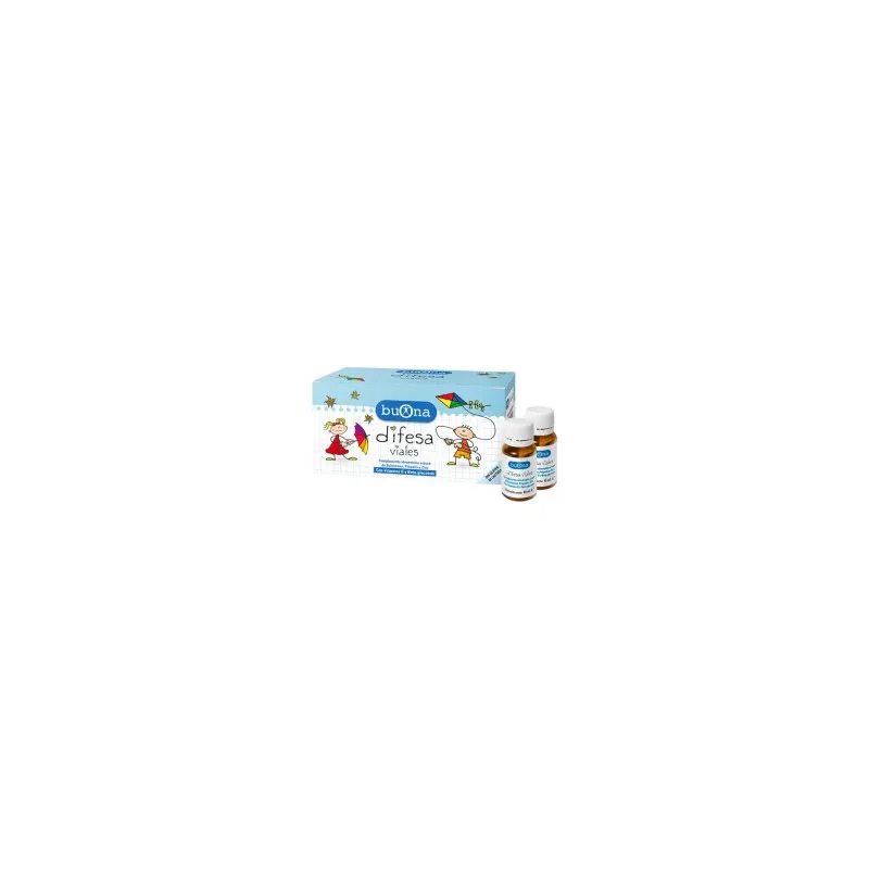 Buona Difesa es un complemento alimenticio presentado en 14 viales de 10 ml cada uno, formulado para niños de tres años en adelante. Combina ingredientes seleccionados para contribuir al apoyo nutricional diario en etapas de crecimiento y desarrollo. El formato en monodosis garantiza una administración práctica y evita la manipulación del envase una vez abierto.