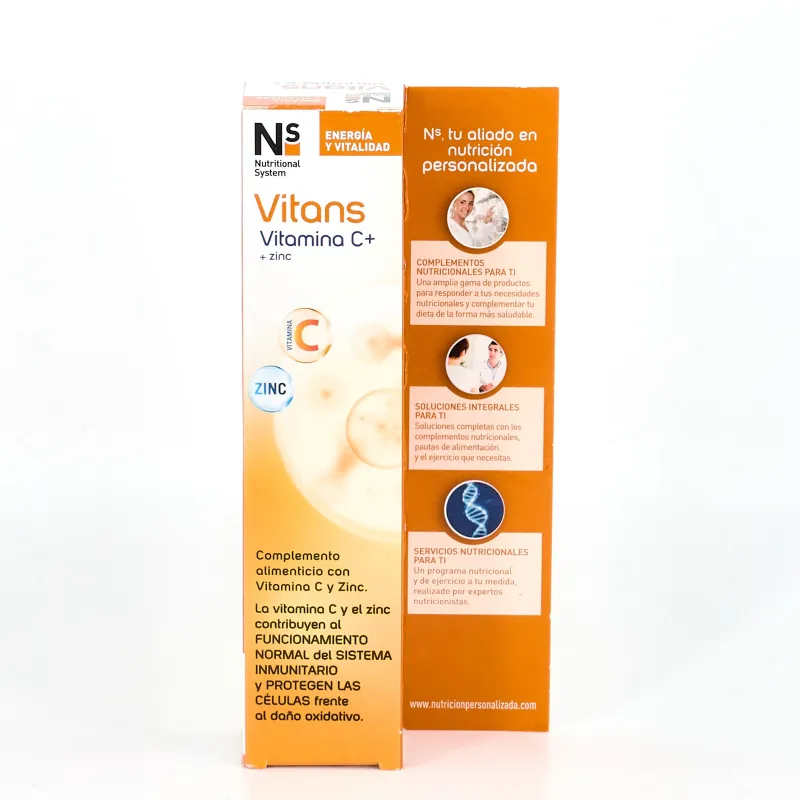 NS Vitans Vitamina C + Zinc son comprimidos efervescentes formulados como complemento alimenticio. Contienen vitamina C y zinc que, según la normativa de salud, contribuyen al funcionamiento normal del sistema inmunitario y al mantenimiento de la salud.